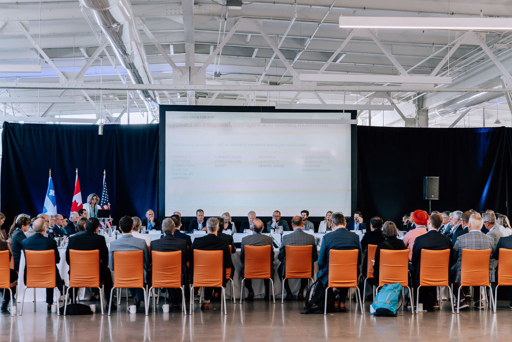 Le 29 septembre 2025, près d’une centaine de leaders du corridor Saint-Laurent–Grands Lacs se sont réunis au Port de Montréal afin de tracer la voie pour renforcer ce corridor vital pour le commerce et la compétitivité de l’Amérique du Nord. Parmi les participants figuraient des PDG de ports, d’opérateurs de navires, de compagnies ferroviaires et de la Voie maritime du Saint-Laurent, ainsi que les trois coprésidents de l’événement : l’honorable Jean Charest, l’honorable Lisa Raitt et Adam Tindall-Schlicht, administrateur de la Voie maritime du Saint-Laurent.