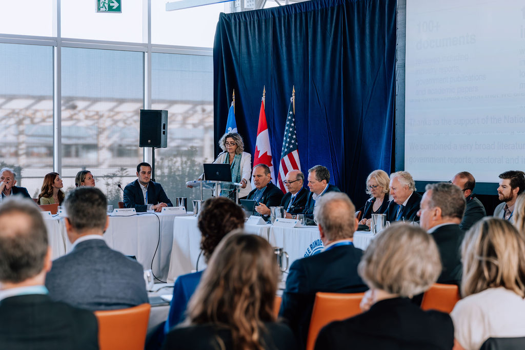 Nathalie de Marcellis-Warin, PDG du CIRANO a présenté des données probantes, issues du jumeau numérique de la région du Saint Laurent et des Grands Lacs, sur l’efficacité et la compétitivité du corridor de transport et de commerce, mettant en lumière les atouts et les défis de ce corridor stratégique. Molivann Panot, directeur de projet au CIRANO a participé à un panel sur la compétitivité du corridor. Plusieurs membres de l’équipe du GVCdtLAB étaient présents tout au long de la journée.