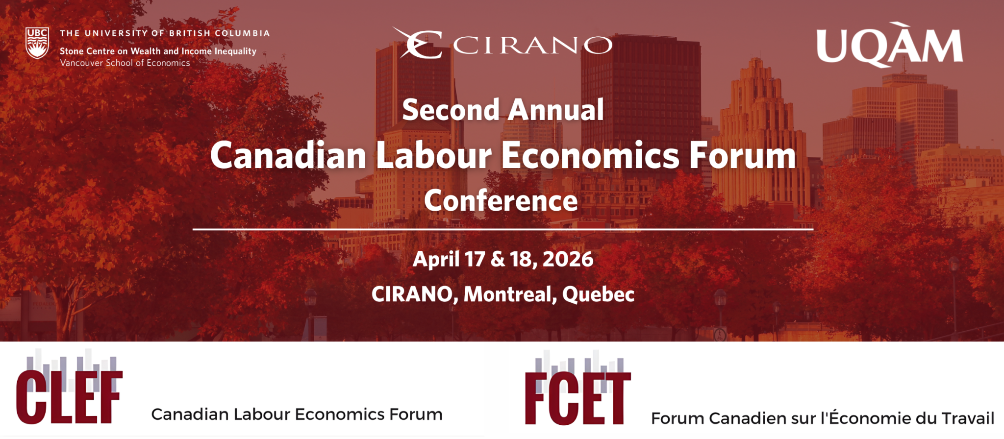 La deuxième conférence annuelle du Forum canadien de l’économie du travail (FCET) aura lieu à Montréal, au Québec, les 17 et 18 avril 2026. CIRANO et le Département des sciences économiques de l’Université du Québec à Montréal seront les hôtes de la conférence. Notre conférencière principale sera Ilyana Kuziemko (l’Université Princeton).