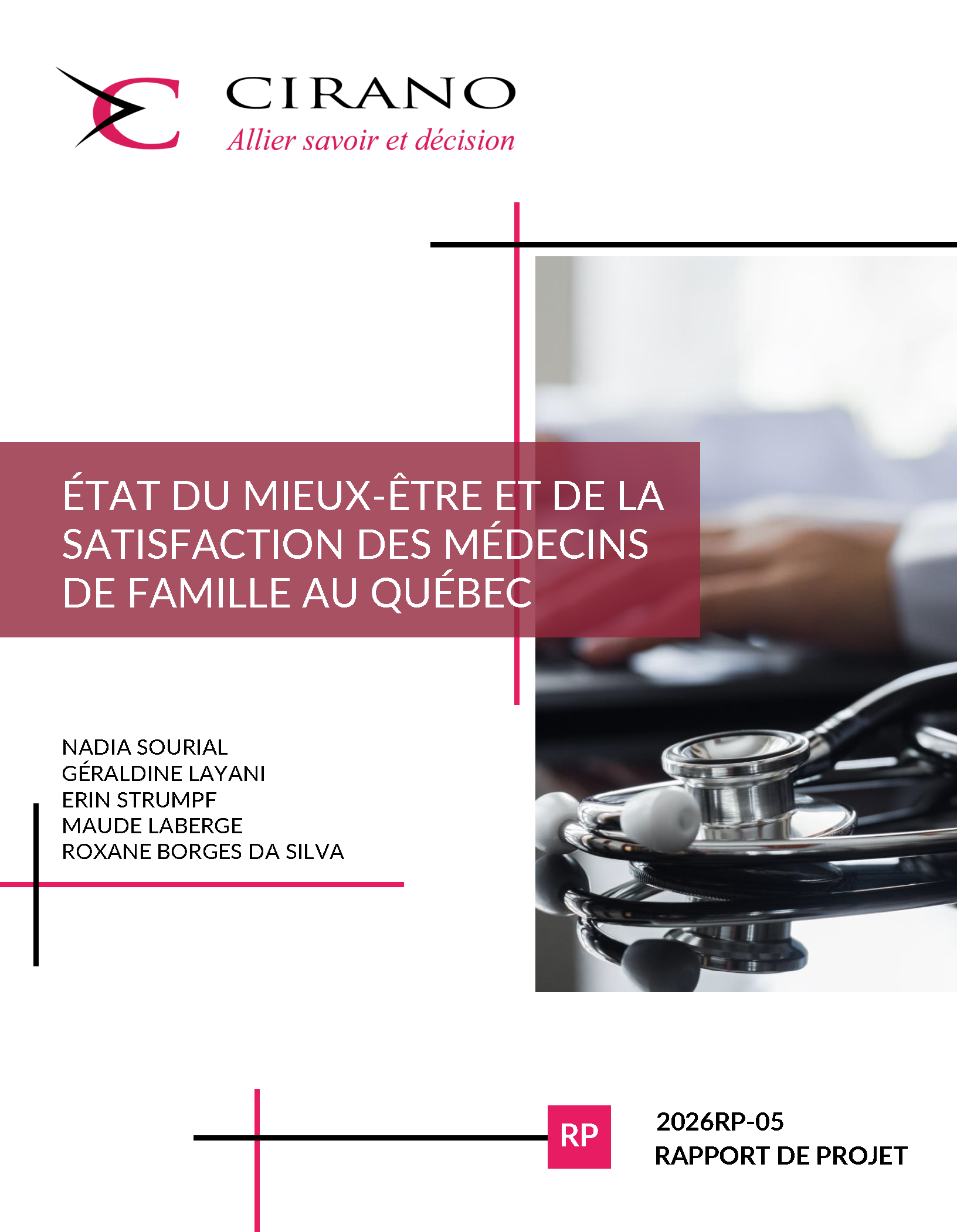 Le mieux-être des médecins de famille est un élément crucial non seulement pour la pratique de la médecine de famille, mais aussi pour la performance du système de santé. La médecine de famille au Québec se heurte à des défis majeurs, notamment la baisse de la rétention, la pénurie de médecins de famille et le manque d’attractivité de la profession. Afin de répondre aux défis actuels et de promouvoir la médecine de famille au Québec, une Table nationale de concertation sur la valorisation de la médecine de famille avait été mise sur pied en 2023 avec comme mandat d’élaborer un plan regroupant l’ensemble des mesures à prendre pour valoriser la pratique de la médecine de famille et en assurer la coordination. Le présent rapport présente les résultats découlant d’une collaboration entre l’équipe de recherche et le comité de suivi de la Table visant à décrire l’état de mieux-être et de satisfaction au travail des médecins de famille en pratique au Québec et à examiner les facteurs associés à leur mieux-être.